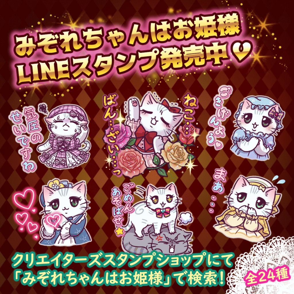 「みぞれちゃんはお姫様」LINEスタンプ発売 ✿漫画をクリックすると拡大表示されます✿ うちの愛しにゃんこ 2025.12.18 一年以上かけてやっとこさ完成!超自己満足、愛しにゃんこLINEスタンプちゃちゃに続く第二弾、「みぞれちゃんはお姫様」もし興味があったら覗いてみてね! LINE購入ページはこちら ちゃちゃLINEスタンプ ちゃちゃの可愛さにテンション上がって結構前に作ったスタンプ↓↓↓こっからショップに飛べるよ line://shop/detail/14982260